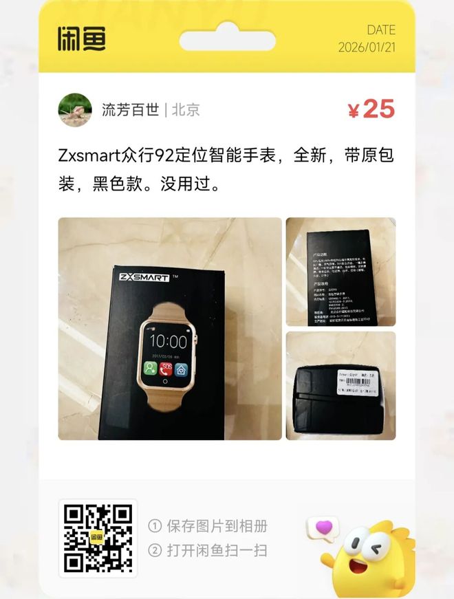 粉丝爆料分享了一台价格25元的Zxsmart众行92定位智能手表,全新,带原包装