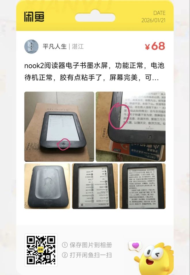 粉丝爆料分享了一台价格68元的nook2阅读器电子书墨水屏,触摸屏,功能正常