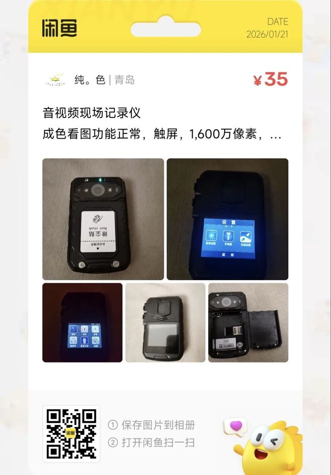 粉丝爆料分享了一台价格35元的执法记录仪,成色看图功能正常,触屏,1,600万像素