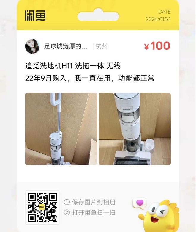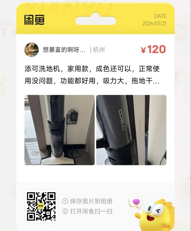 粉丝爆料分享了一台价格120元的添可洗地机,家用款,成色还可以,正常使用没问题