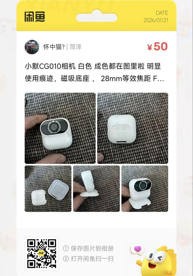 粉丝爆料分享了一台价格50元包邮的小默CG010相机 白色 成色都在图里啦 明显使用痕迹,磁吸底座